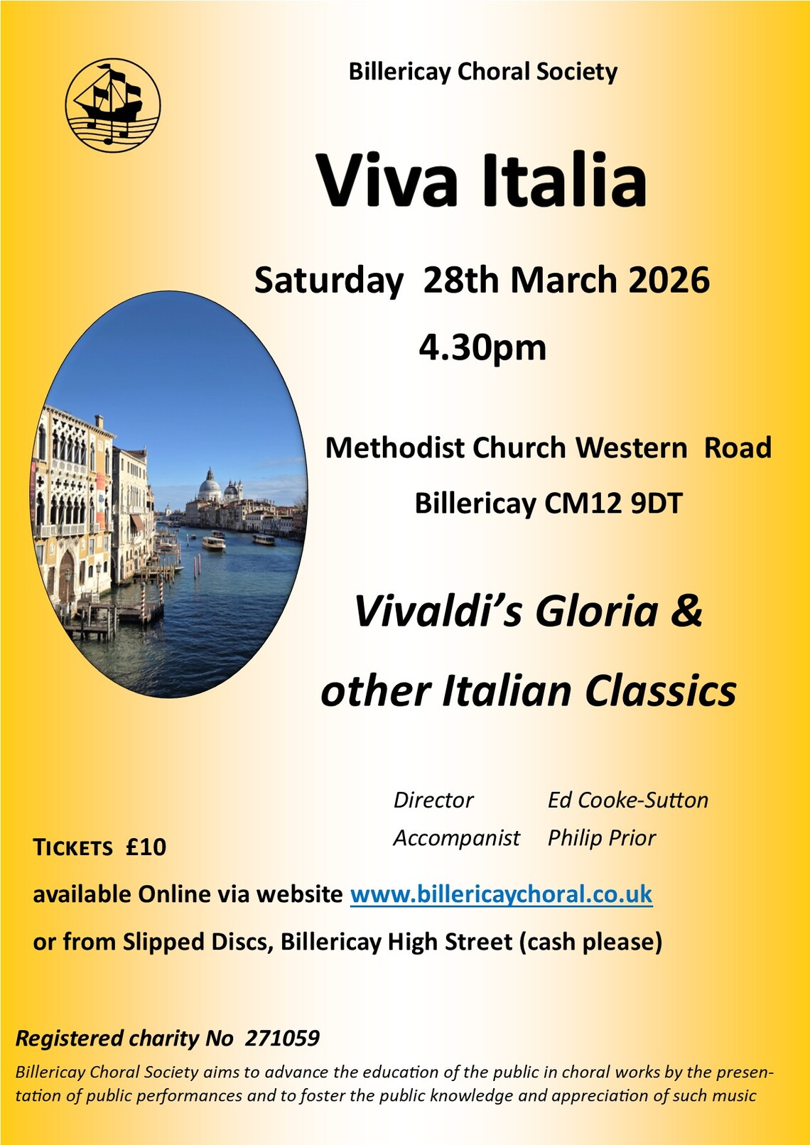 Billericay Choral Society is a respected local choir based in Billericay with members from the surrounding area. We give several concerts a year encompassing a wide range of music.